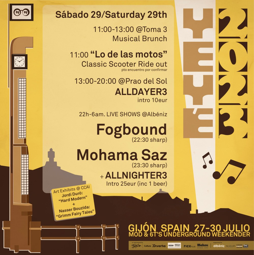 “Los tambores siguen lanzando el ritmo en nuestras cabezas”, reza la letra que grabó la supuestamente achispada sobrina de Rich. Y eso fue lo que conseguimos desde Asturias; que el ritmo continuara. Durante diez años disfrutamos de un singular weekender con la mejor música mod-6t’s original, increíbles bandas en directo, scooters de chapa y en definitiva bailamos muchos fines de semana de vida total. Aparte de sufrir luego disforias realmente acusadas; un daño colateral, sin más.