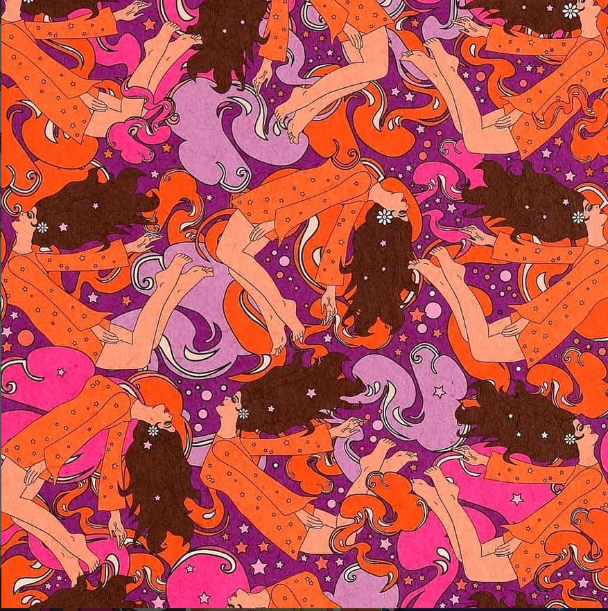 I was born in Guatemala City in 1982. From a young age, I developed a strong connection with the art and aesthetics of the 1960s, influenced by the vinyl records I listened to with my father and the films from that era I watched with my grandmother. I studied illustration at university and, upon graduating, moved to England, where I lived for six years. There I began to work professionally as an illustrator, holding exhibitions and promoting my work. During this period, I collaborated with well-known musicians and worked with fashion brands such as Anna Sui. In addition, Urban Outfitters sold prints featuring my illustrations. My work is deeply inspired by the psychedelic art of the 1960s, reinterpreted from a contemporary perspective.